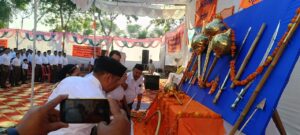इस अवसर पर देश के विभिन्न हिस्सों में समारोह आयोजित हुए, अपने शहर के राम तलाई मंदिर के प्रांगण में हुए समारोह के दौरान समारोह के अध्यक्ष डॉ माणिक महाजन जी व संघ के पदाधिकारी म अरुण अग्रवाल जी विभाग संघ चालक व मुख्य अतिथि डॉ रजनी गोगोई और मुख्य वक्ता श्रीमान डॉ किस्मत जी उतर क्षेत्र सह कार्यवाह ने विधिवत शस्त्र पूजन किया।