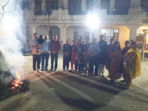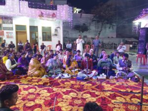 भजन संध्या की शुरुआत रात्रि ठीक 8:00 बजे श्री देवराहा बाबा आध्यात्मिक सत्संग महामंडल के सीनियर सदस्य रविंदर कुमार ने अपनी मधुर से श्री देवराहा बाबा के महामंत्र तथा श्री हनुमान चालीसा से कीl इसके उपरांत सुरेंद्र जंबा, बलविंदर नीटा ,अंकुश, संजना भाटिया, अंजलि और कोमल ने अपनी मधुर आवाज का जादू बिखरते हुए वातावरण को भक्ति मय बना दिया lयुवा गायक कोमल , अंकुश तथा अंजलि द्वारा गाए गए भजन मैंने पायल छनकाई रे ,राधा तेरे नाम की, मैं सब द्वार को छोड़कर पड़ी हूं तेरे द्वार, हे वृषभानु दुलारी मेरी और निहार , तेरे बगैर जिया नहीं जाए, नी मैं नचना मोहन दे नाल आज मेनू नच लेन दे जैसे भजन गायन कर श्रद्धालुओं को झूमने पर विवश कर दिया l भक्ति का रस इतना चढ़ा की प्रत्येक रसिक अपने आप को वृंदावन मे ठाकुर जी तथा श्री राधा रानी जी के श्री चरणों में बैठा महसूस करने लगा lभजनों का यह सिलसिला रात्रि लगभग 10:30 बजे तक चला और उसके उपरांत होलीका दहन किया गया lइस दौरान सभी श्रद्धालुओं ने भक्त प्रहलाद और नरसिंह भगवान का स्मरण करते हुए होलिका की परिक्रमा की lकार्यक्रम के दौरान आए हुए सभी श्रद्धालुओं ने प्रसाद भी ग्रहण कियाl
